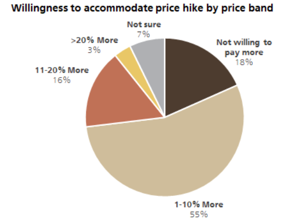 在那些表示未来12个月可能购机的受访者中,高达82%的人表示,如果智能手机厂商为了抵消关税带来的物料清单(BoM)成本压力而决定提价,他们愿意接受某种程度的价格上涨。